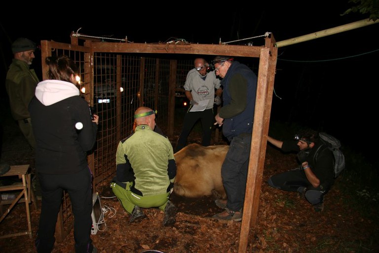 L’animale è entrato verso le 22 nella gabbia che si è chiusa automaticamente ed è stato quindi immediatamente sedato, sottoposto a vari prelievi di pelo e sangue e pesato. È stato quindi dotato di collare satellitare. Verso l'una del mattino l'animale si è risvegliato e ha incominciato a mettersi in cammino: all'alba del 29 maggio, era nel versante ovest ad oltre 1600 metri di quota del Lovinzola nella Val di Preone, dove, in un luogo riparato, ha trascorso la giornata di domenica.