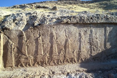 In the summer and autumn of 2019, the joint Italian-Kurdish mission identified ten monumental rock reliefs from the Assyrian period (8th - 7th century BCE) carved into the rock along an ancient irrigation canal 8.5 km in length at the archaeological site of Faida. The Faida canal, at the base of a hill and fed by a system of karst springs, was probably built by the Assyrian ruler Sargon II (721-705 BCE) Today, the canal, which has an average width of 4 meters, is almost completely buried under thick layers of earth deposited by the erosion of the hillside. Smaller canals branched off from the main canal, allowing irrigation of the surrounding fields and increasing agricultural production in the countryside around Khorsabad and Nineveh, the last two capital cities of the Assyrian Empire.