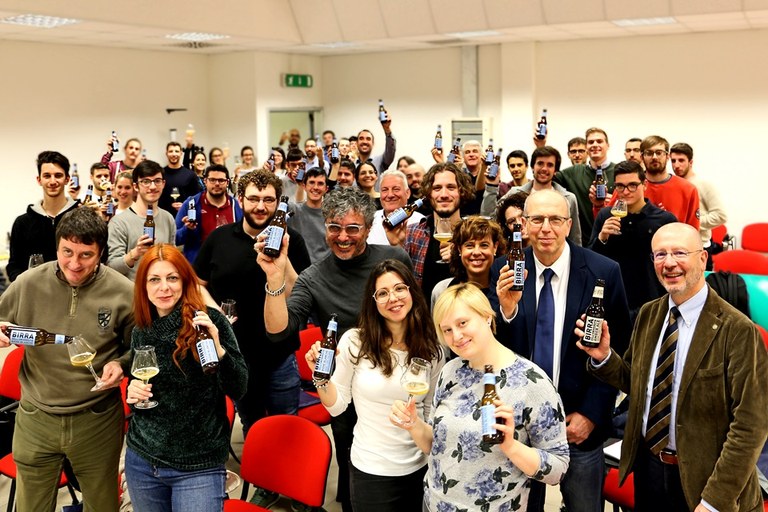 Foto di gruppo con gli studenti che hanno realizzato la nuova birra