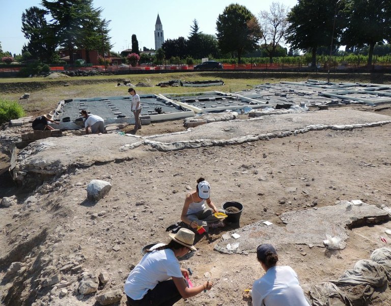 Le istituzioni coinvolte. La campagna 2017, diretta da Marina Rubinich per conto dell’Ateneo friulano, si svolge in base a una concessione per scavi e ricerche accordata, per l’anno in corso, dalla Direzione generale archeologia, belle arti e paesaggio del ministero dei Beni e delle Attività culturali al dipartimento di Studi umanistici e del patrimonio culturale dell’Università di Udine, in stretta collaborazione con la locale Soprintendenza e con la funzionaria responsabile, Paola Ventura. L’Università di Udine finanzia le spese che riguardano il mantenimento degli studenti, la logistica e le attrezzature. Le altre attività, comprese quelle di restauro e di valorizzazione, sono garantite dal sostegno alla ricerca da parte della Fondazione Aquileia, a cui la zona delle Grandi Terme è recentemente passata in gestione, insieme a tutte le più importanti aree archeologiche della città romana.