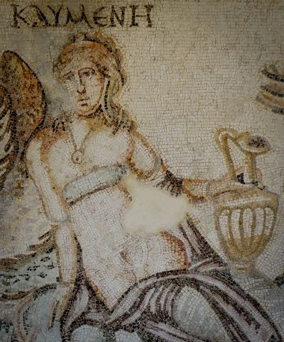 In particolare, nella sala a pianta centrale, grandi trapezi con nereidi sedute sulla groppa dei loro compagni tritoni, si impostavano su un ottagono centrale, forse ornato dalla testa di Oceano; resta un solo trapezio, che, staccato grazie ad un intervento finanziato dalla Soprintendenza Archeologia nel 2013, è oggi visibile nel Lapidario del Museo Nazionale di Aquileia. Nell’ambiente rettangolare di risulta, i mosaici, originariamente a tessuto geometrico, furono più volte restaurati con semplici tessere bianche; dato il loro pessimo stato di conservazione, essi sono stati asportati dalla missione udinese, ritrovando, negli strati di preparazione, resti di anfore con colore azzurro e malte fini usati probabilmente per affrescare la vicina sala ottagonale e poi riutilizzati come inerte per i sottofondi del pavimento, e una monetina molto usurata, che ha confermato la datazione al V secolo della ristrutturazione.