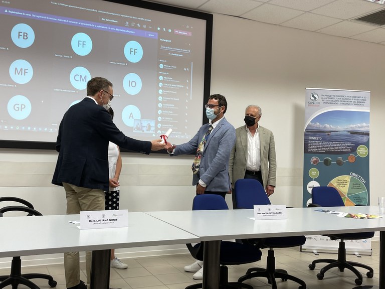 I premi sono stati consegnati dal dott. Luciano Nonis, Direttore della Fondazione Friuli, e conferiti al dott. Zarantoniello per il progetto “Zero-waste production of alternative aquafeed ingredients for farmed fish culture”, un’originale e innovativa idea che sviluppa i risultati ottenuti da SUSHIN attraverso la produzione di mangimi sostenibili “a ciclo chiuso”. Secondo premiato il dott. Casarano per la tesi magistrale “Effetti dell’aggiunta di ingredienti bioattivi in diete a larga base vegetale sulle prestazioni zootecniche e sulla fisiologia intestinale di orata (S. aurata L.)” risultata la migliore nell’ambito del progetto. Il dott. Nonis ha elogiato il lavoro svolto e i risultati ottenuti dall’Università di Udine, che si è sempre distinta per l’elevato livello di progettualità e di qualità delle ricerche effettuate in ambito Ager. Ricordando che la valorizzazione dei giovani ricercatori è uno degli obiettivi primari del gruppo di Fondazioni associate e riconoscendo che il progetto SUSHIN, grazie al premio, ha colto perfettamente questo aspetto, promuovendo l’entusiasmo verso la ricerca e la curiosità scientifica.