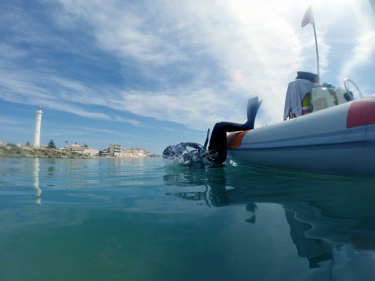 Relitto di Punta Secca: entrata in acqua