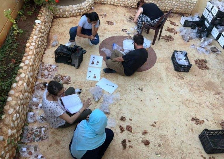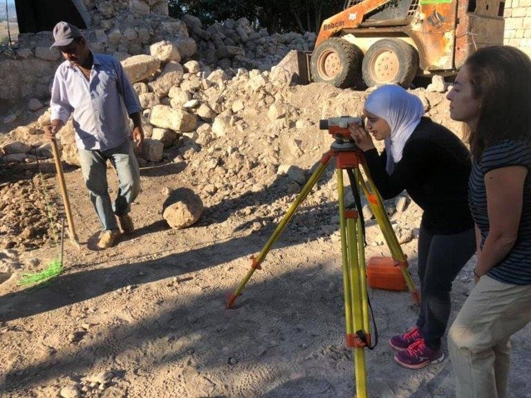 Operazioni di misurazioni archeologiche durante gli scavi ad Amioun