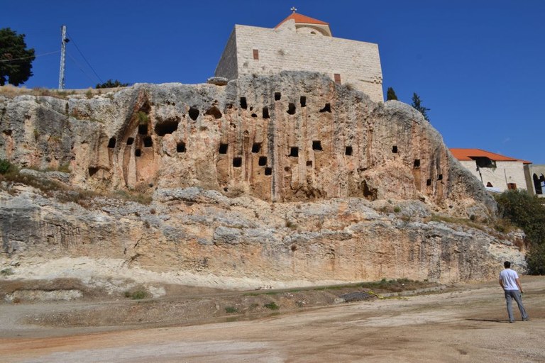 Tombe scavate nella falesia su cui sorge il centro antico di Amioun, dominato dalla chiesa di San Giovanni
