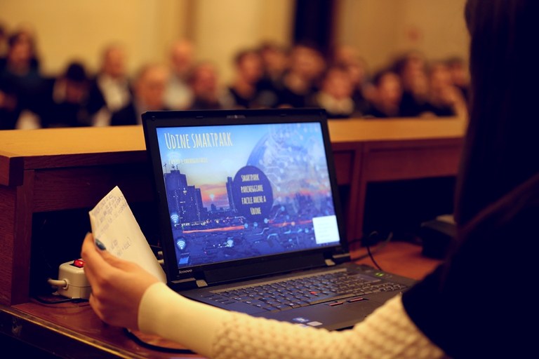 Grande partecipazione e tante idee creative firmate dai giovani per Udine smart city e città universitaria del futuro al primo Hackathon Uniud, intitolato #UNIUDine, svoltosi in due fasi nel capoluogo friulano. Regia dell’Officina Sistemi digitali di supporto avanzato alle decisioni strategiche del Cantiere Friuli dell’Università di Udine, che ha curato la prima edizione di un’iniziativa inserita anche nel quadro delle relazioni tra Università e Comune di Udine. La civica amministrazione ha dato il suo patrocinio, condividendo con l'ateneo l'obiettivo di rendere il capoluogo friulano una città universitaria di eccellenza. Dopo la fase di raccolta e confronto che ha coinvolto oltre 60 studenti dell’ateneo e delle scuole superiori udinesi, la qualificata giuria dell’Hackathon ha selezionato, tra i 9 progetti presentati dai gruppi di lavoro, le tre idee migliori, che sono: il progetto Fogolârx2.0 (primo classificato), che propone la coabitazione tra studenti e anziani in un'accogliente e moderna residenza multiservizi, nell'ottica di uno scambio culturale intergenerazionale attivo e permanente; il progetto Udineasy (secondo classificato), che integra e potenzia nel segno della mobilità sostenibile i trasporti urbani con la rete urbana di bike sharing; il progetto Safau Green Revolution (terzo classificato), che ripensa l'area industriale dismessa dell'ex Safau a Udine sud, per riqualificarla dal punto di vista urbanistico, riconvertendola in un parco fruibile per lo svago, la cultura e l'intrattenimento.