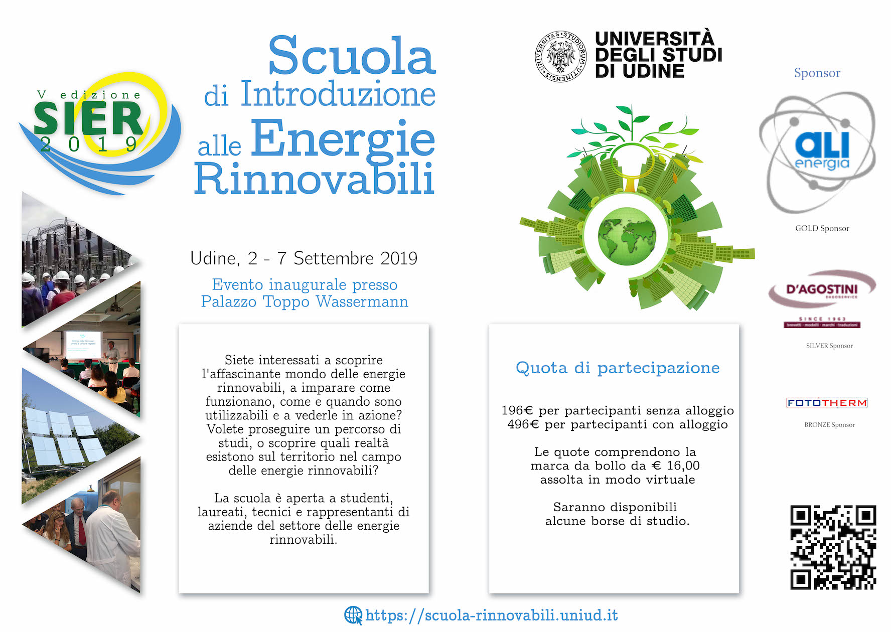 Sono aperte le iscrizioni alla V edizione della “Scuola di Introduzione alle Energie Rinnovabili” (SIER) che si terrà dal 2 al 7 settembre, a Udine presso il Dipartimento Politecnico di ingegneria e architettura dell’Università di Udine.