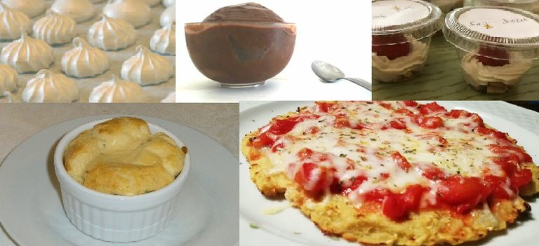 In senso orario: Meringa vegan, Coccolato, Soy-Sweet, Souflé, Cavolf-lower